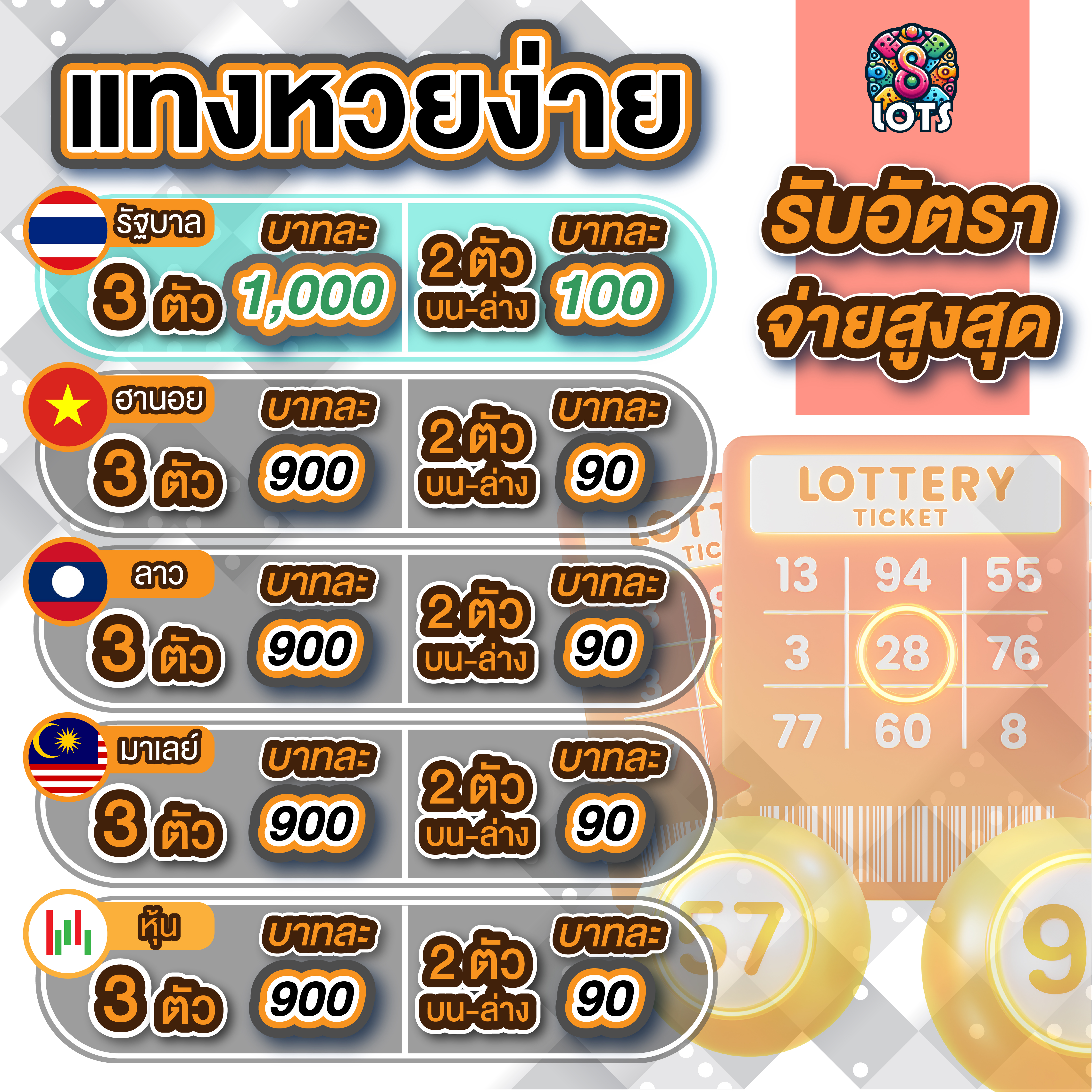 เว็บพนัน 8LOTS - แหล่งรวมความบันเทิงด้านการเดิมพันออนไลน์ครบวงจร ที่เปิดให้บริการมาอย่างยาวนานกว่า 5 ปี พร้อมระบบที่ทันสมัย รองรับทั้งการเล่นผ่านคอมพิวเตอร์และมือถือ ด้วยความมั่นคงทางการเงินและความน่าเชื่อถือระดับสากล 8LOTS ได้รวบรวมเกมพนันยอดนิยมไว้มากมาย ทั้งคาสิโนสด สล็อต กีฬา และหวยออนไลน์ พร้อมระบบฝาก-ถอนอัตโนมัติที่รวดเร็วภายใน 30 วินาที ตลอด 24 ชั่วโมง ด้วยทีมงานมืออาชีพคอยให้บริการและดูแลสมาชิกอย่างใกล้ชิด รับประกันความปลอดภัยในการใช้งานและการทำธุรกรรมทางการเงิน